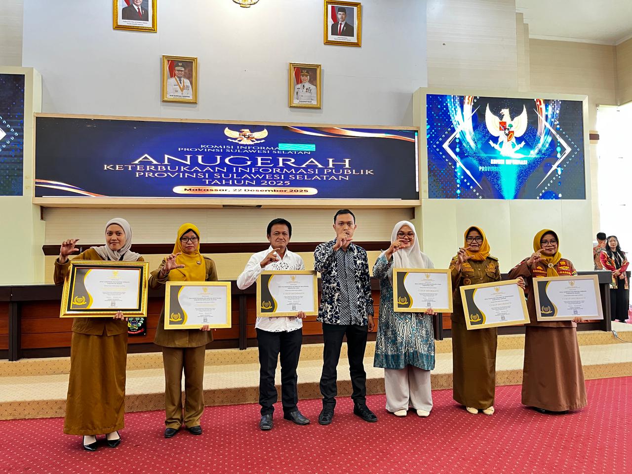 Penerimaan Piagam Penghargaan pada Acara Anugerah Keterbukaan Informasi Publik Provinsi Sulawesi Selatan Tahun 2025